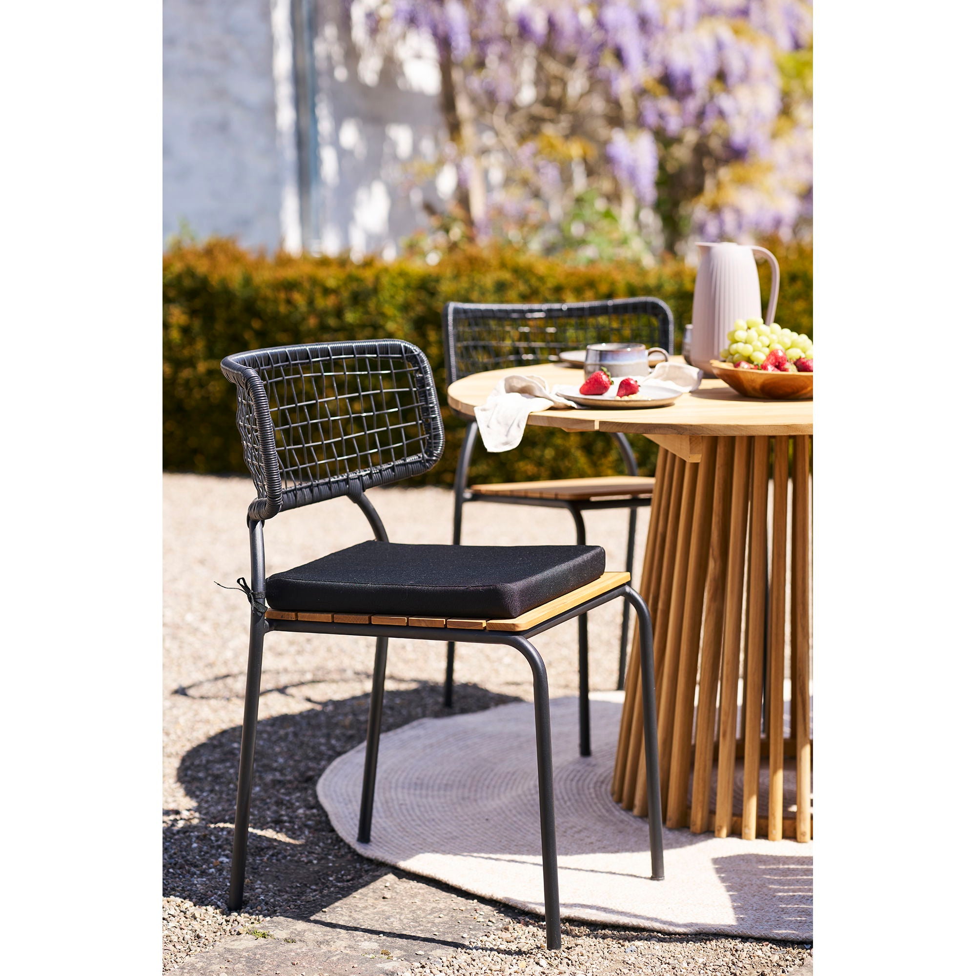 Nashville Gartenstuhl – Teak & schwarzes Seil, schwarzes Gestell, 4er Set