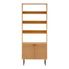Kyoto Bücherregal – Eichefurnier, 2 Türen, 4 Regalfächer, schwarze Metallbeine, 80 × 30 × 200 cm