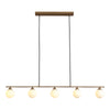 Die Halifax Pendelleuchte vereint zeitlose Eleganz mit modernem Design. Ihr längliches, messingfarbenes Gestell aus Stahl wird durch sechs gleichmäßig verteilte Glaskugeln ergänzt und sorgt so für eine harmonische Lichtverteilung – perfekt über dem Esstisch oder in großzügigen Wohnräumen.